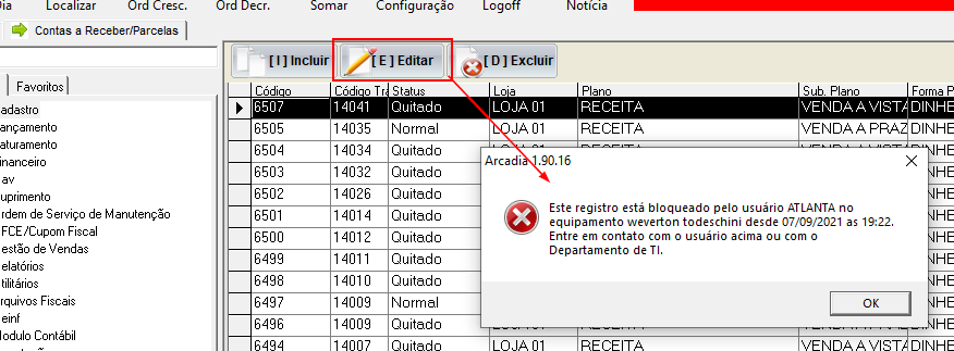 Suporte comum de ocorrer, são os casos, onde o usuário se depara com bloqueio de registros, e não sabe como desbloquear, as vezes ocorre por falta de conhecimento do mecanismo, por falta de configuração, ou até mesmo por algum erro.
