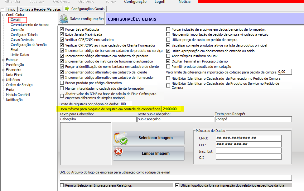 A configuração para personalizar o tempo de checagem, está na imagem abaixo, tem de ter cuidado para não colocar um tempo muito baixo ,e encerrar o processo de um usuário por exemplo, há vendas que necessitam de alterações, então tem de ser bem alinhado com responsável.